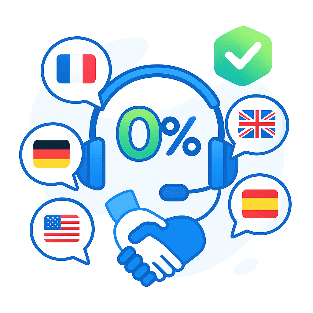 Que vous soyez basé en Europe, en Afrique ou au Moyen-Orient, notre équipe vous accompagne dans votre langue, avec un support humain réactif et disponible.